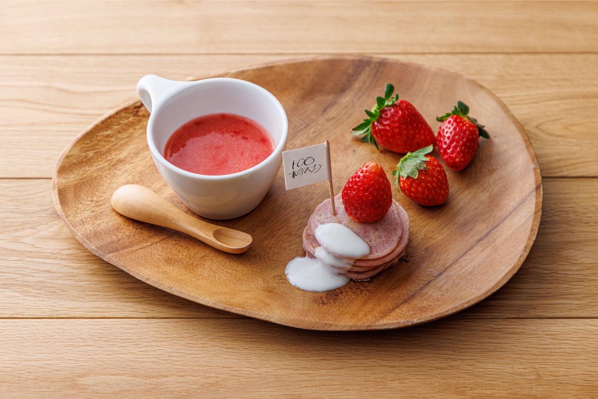 100本のスプーンは、「塗り絵メニュー」や「紙芝居仕立てのコースメニュー」の提供といった、独自のアプローチでお子様が食に触れる機会を作っています。同レストランで、はじめての親子での外食を体験するご家庭も多いため、今回の特別メニューを「はじめてのいちご体験」としても楽しんでもらうことを期待して、離乳食のメニューを考案しました。