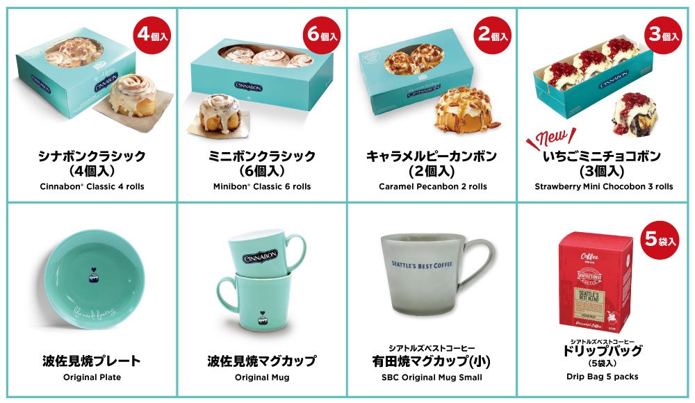 また、「シナボン」と相性が抜群の「シアトルズベストコーヒー」のドリップバッグコーヒーや、シナボングッズも豊富に取り揃えております。