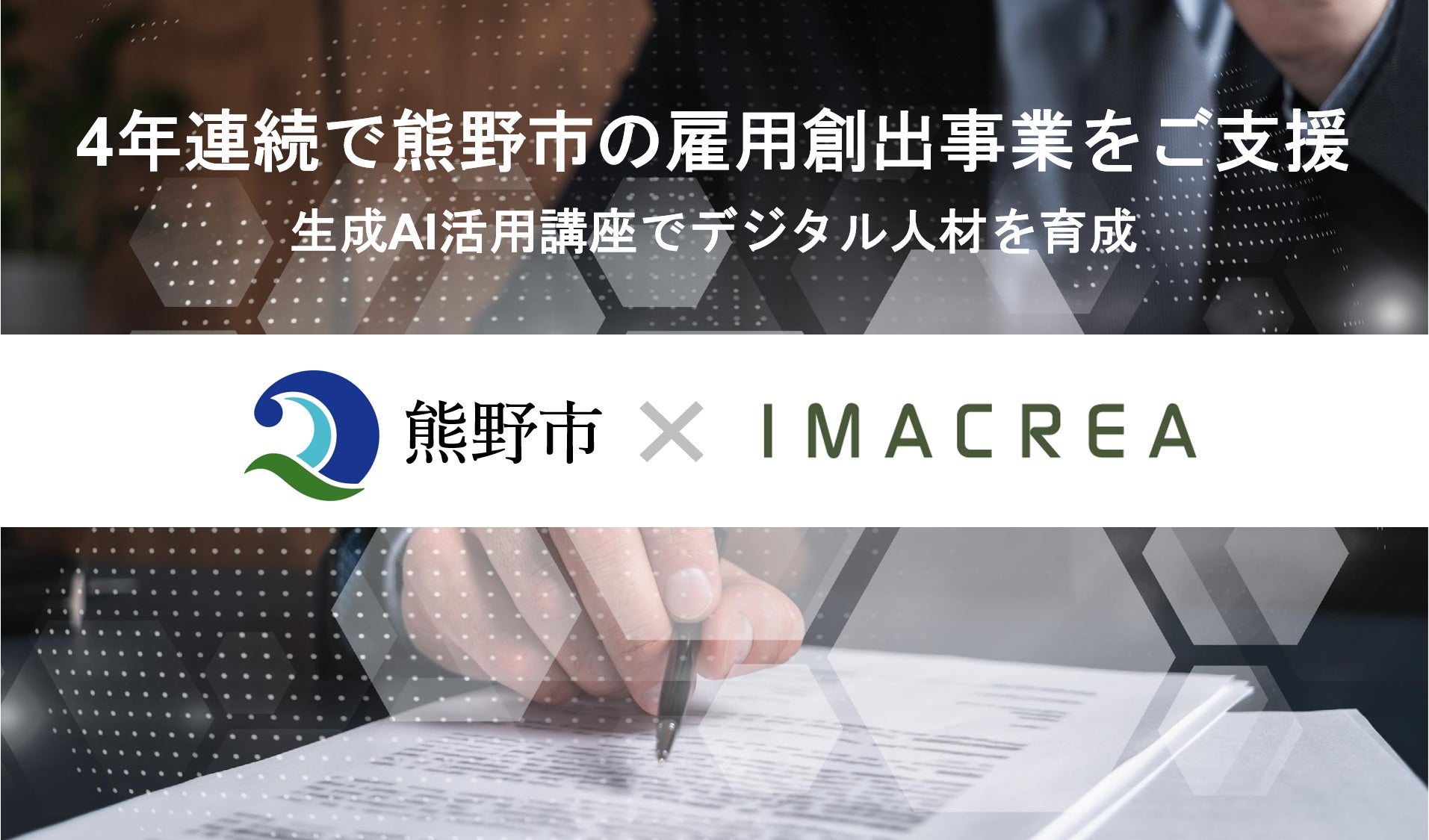株式会社イマクリエ(本社:東京都港区、代表取締役:鈴⽊信吾、以下、当社)は、三重県熊野市からテレワーカー育成業務(令和7年度実施)を受託し、令和4年度から4年連続で本事業を担うこととなりました。