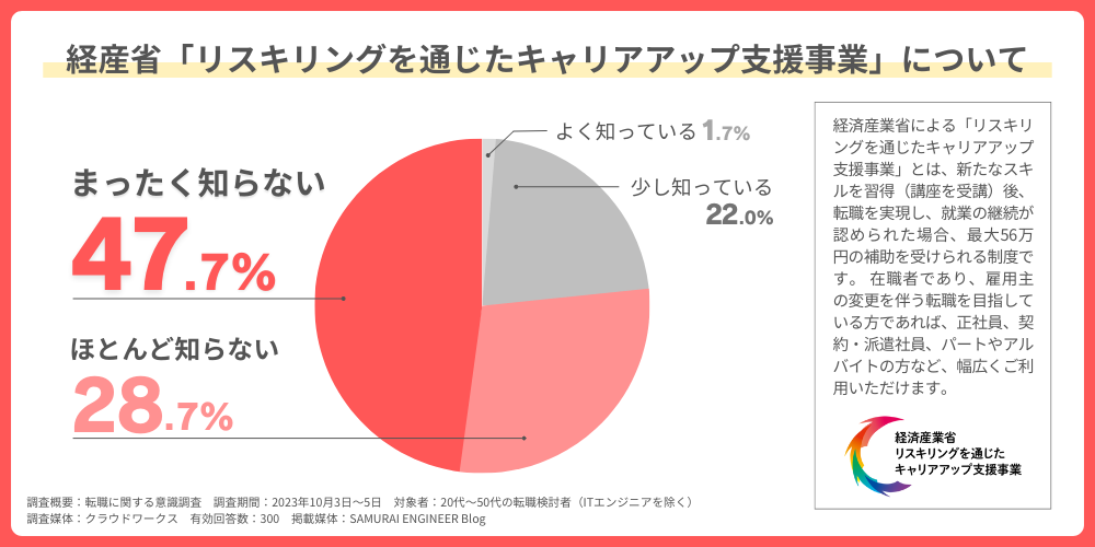 [3]経産省による「リスキリングを通じたキャリアアップ支援事業」の認知度は23%