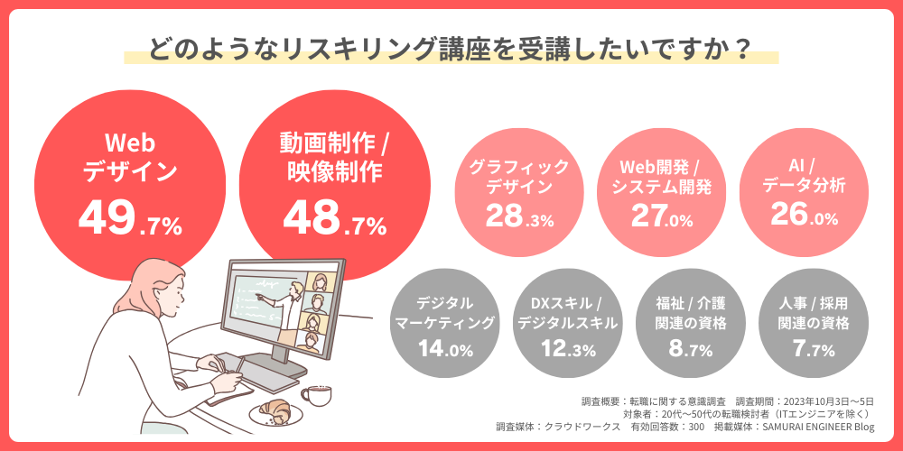 [7]興味・関心の高いリスキリング講座は「Webデザイン」と「動画 / 映像制作」