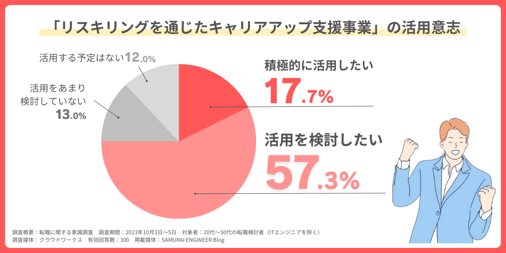 このような観点から見ても、経済産業省による「リスキリングを通じたキャリアアップ支援事業」を活用することで、キャリアアドバイザーによる転職支援を受けながら、確実に転職を成功させたいという転職希望者の想いが見えてきます。