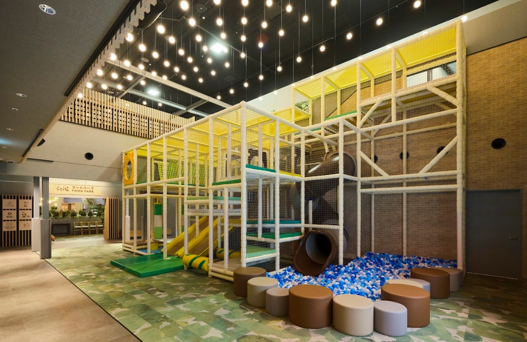天然温泉大浴場「るり湯」は、水着で楽しめる温泉、温水プール、サウナなど、多彩な温浴施設を備えたスパエリアです。リニューアルに伴い、岩盤浴も34台へと増床し、さらに快適にご利用いただけるようになりました。また、地元の食材を使用した料理をお楽しみいただけるフードパークでは、和食、麺類、洋食、ドーナツなど、バラエティ豊かなメニューをご用意しております。さらに、室内アスレチックや小さなお子さま向けのキッズエリア、書籍を備えたリラクゼーションルームなど、充実した遊び方をご用意。年代を問わず多くのお客様にお楽しみいただけます。