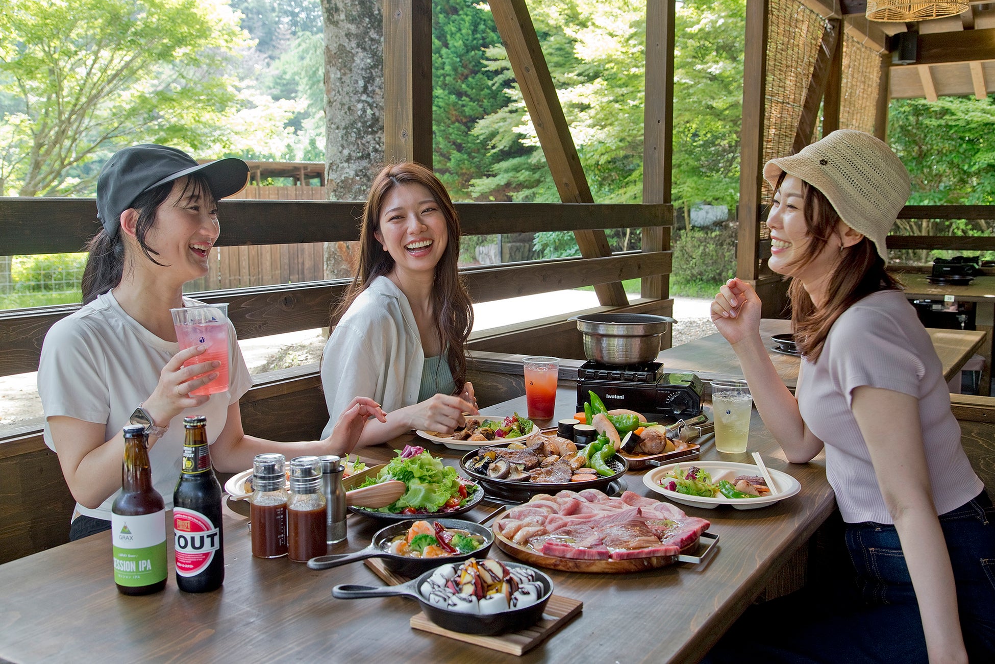 その他にも、グループでわいわい楽しみたい方におすすめの、大自然の中でBBQやテント泊を手ぶらで快適に楽しめるグランピングスタイルの「GRAX」や、お子さま連れのファミリーに嬉しい、アウトドア要素も備えた一棟貸切の高原ヴィラ「HANARE」など、シーンに合わせて様々な宿泊タイプをお選びいただけます。