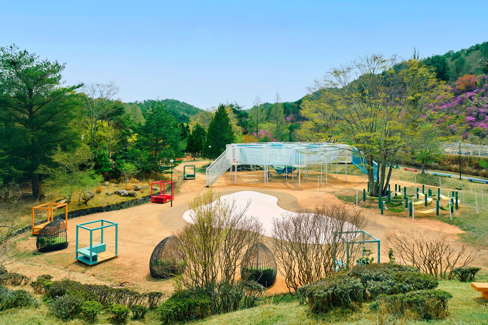 広大なレジャーエリアの中には、お子さまが全力で遊べるふわふわドームやネットアスレチックを新設しました。遊具を囲むように配したガゼボでは、子どもたちを見守りながら、自然の中でゆったりとお寛ぎいただけます。また、プレイングフィールドは、ボルダリングやストラックアウト、サッカーPKゲーム、射的など約50種類のあそびグッズを揃えており、自由にのびのびと遊ぶことのできるエリアです。他にも、るり渓の高原を満喫できる、眺めの良いハイキングコース「TEKUTEKU ROAD」も新たなスポットとして誕生します。