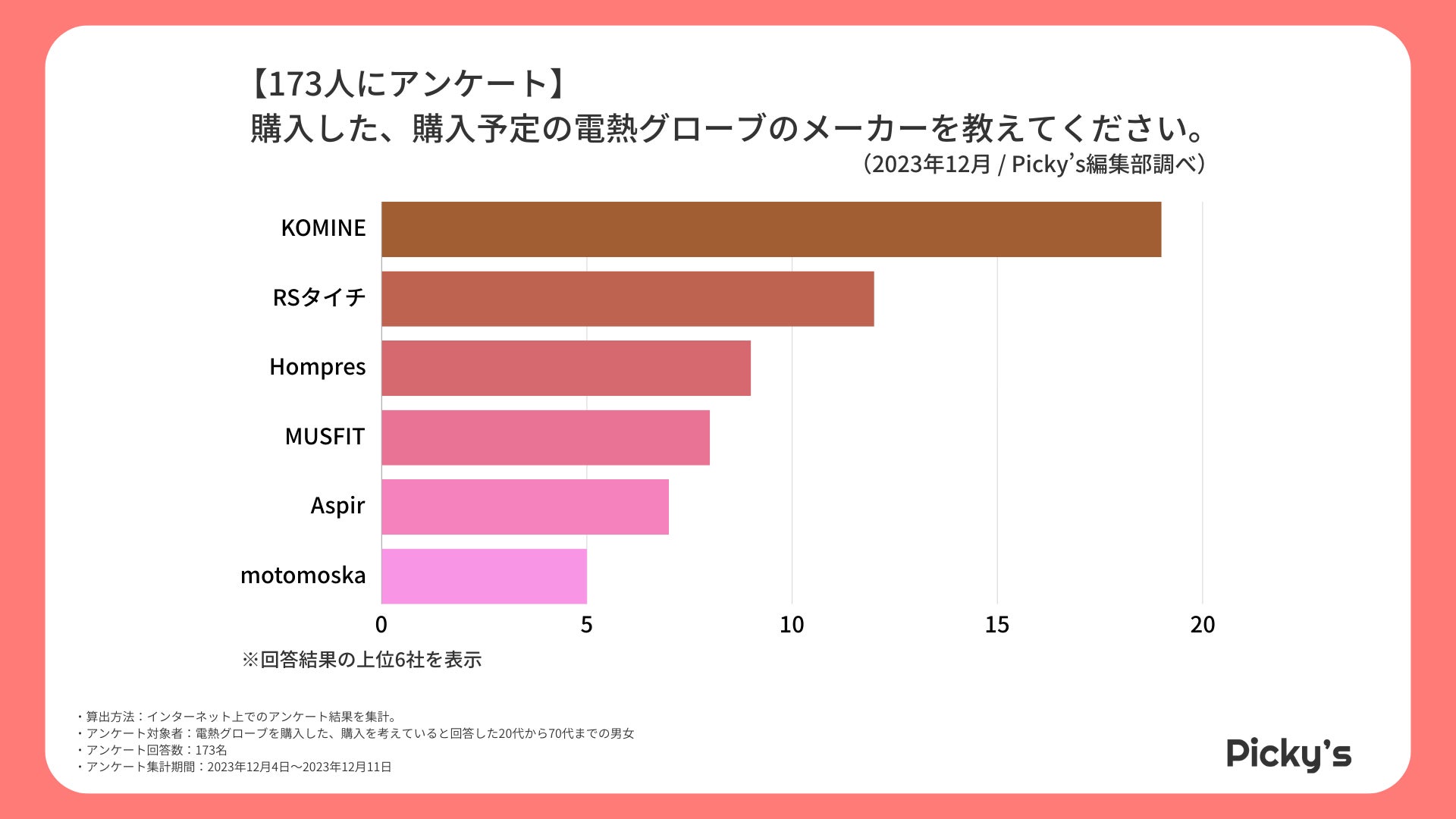 「Picky’s」は、インターネットショッピングにおいて、購入前に試せない・選ぶべきものがわからないという課題の解決を目標に、あらゆる商品のおすすめランキングや検証レビューを紹介するサイトです。このたびPicky’s(https://rentry.jp/note/)では、電熱グローブについてインターネット上でアンケート調査を行いましたので発表いたします。