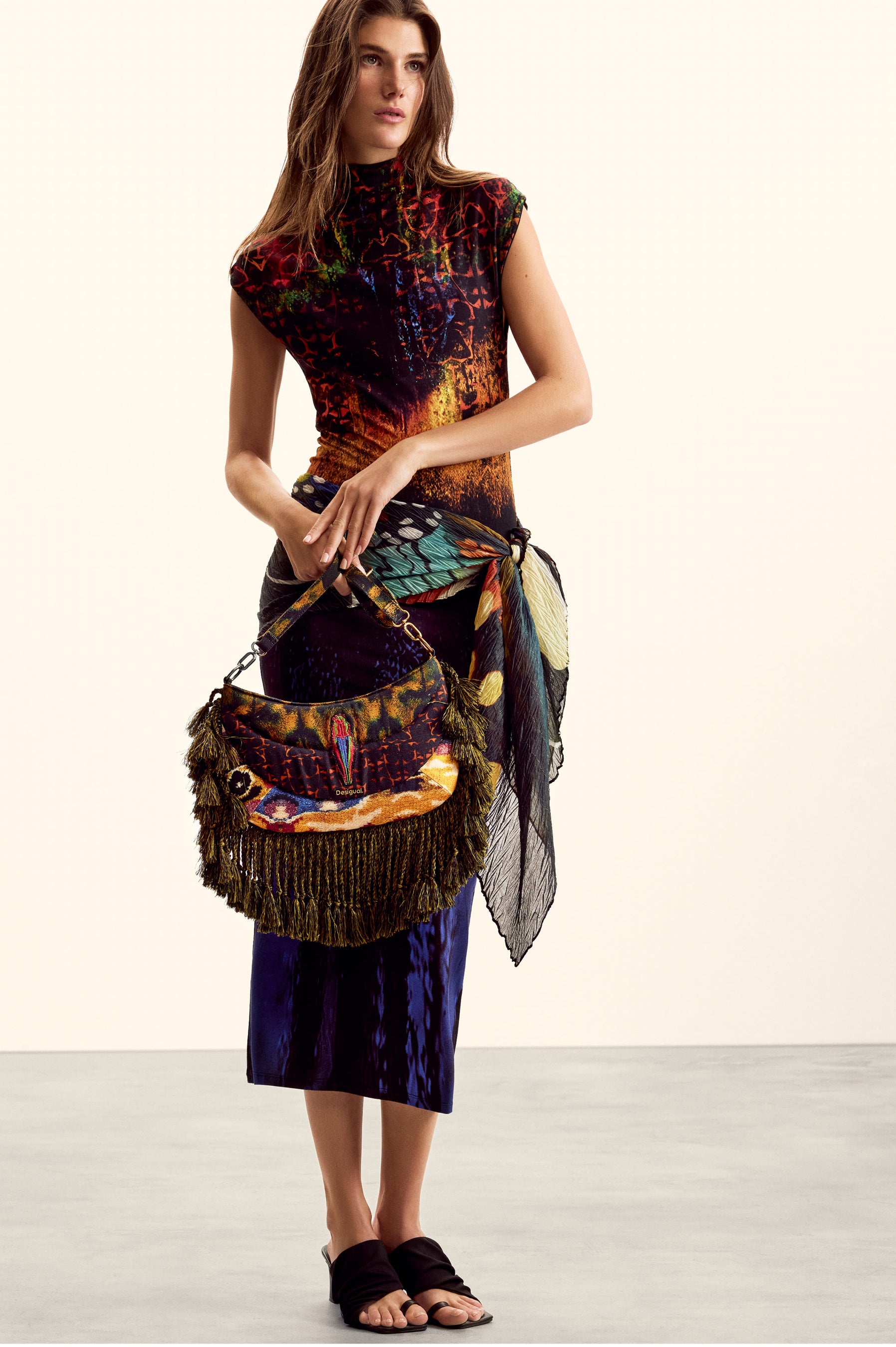 アクセサリーには、フリンジをあしらったプリント&キルティングツイルバッグ、厳選されたスカーフがラインナップ。それらのピースが全体を統一し、プリントを象徴的なテーマとして際立たせています。