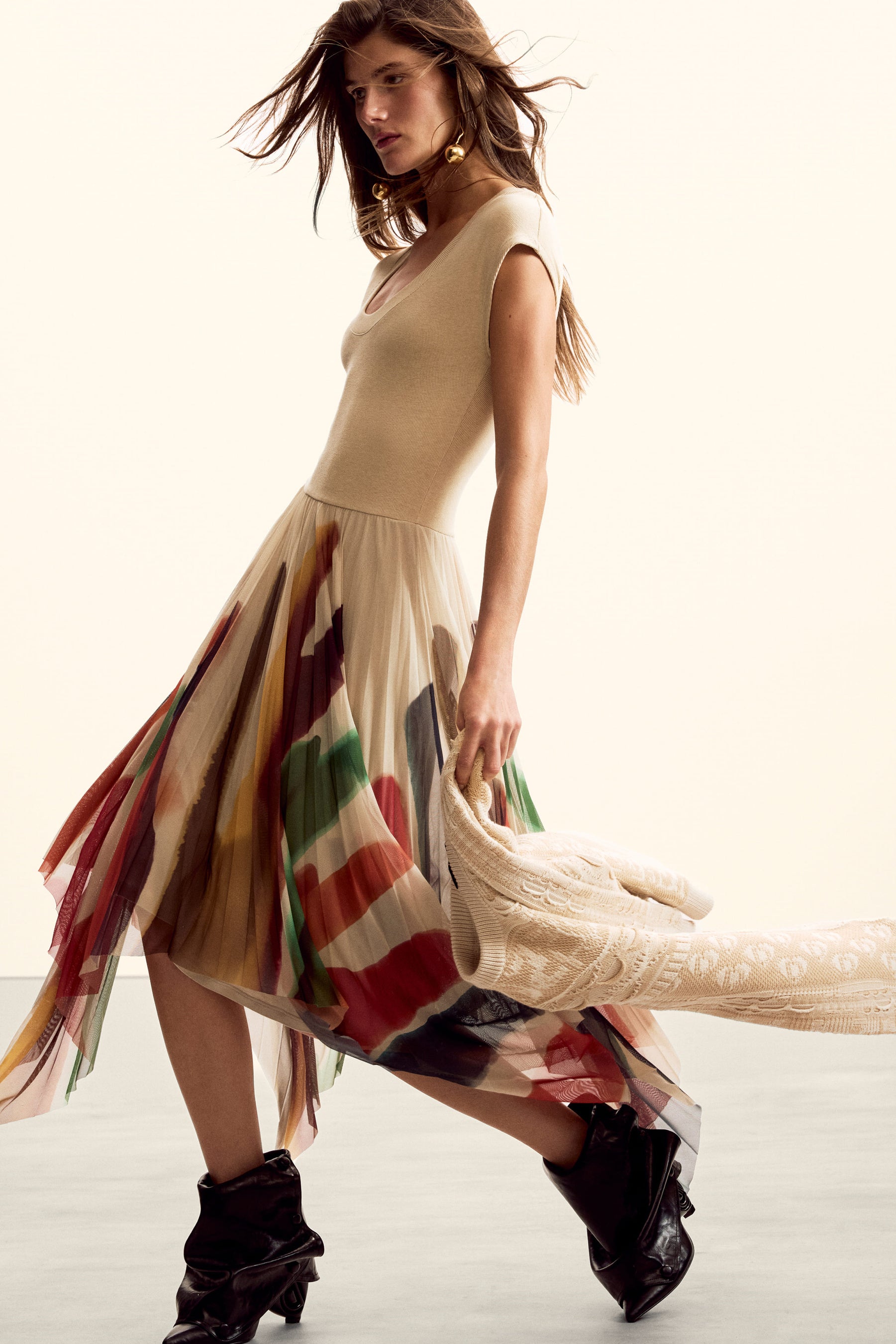 ひとつは、エスニックなインスピレーションを現代的に再解釈した世界観。古代エジプトの甲虫の虹色の輝きや伝統的なブランケットといった、文化的・絵画的なモチーフが、水彩画のような繊細さを纏いながらプリントとして昇華されています。