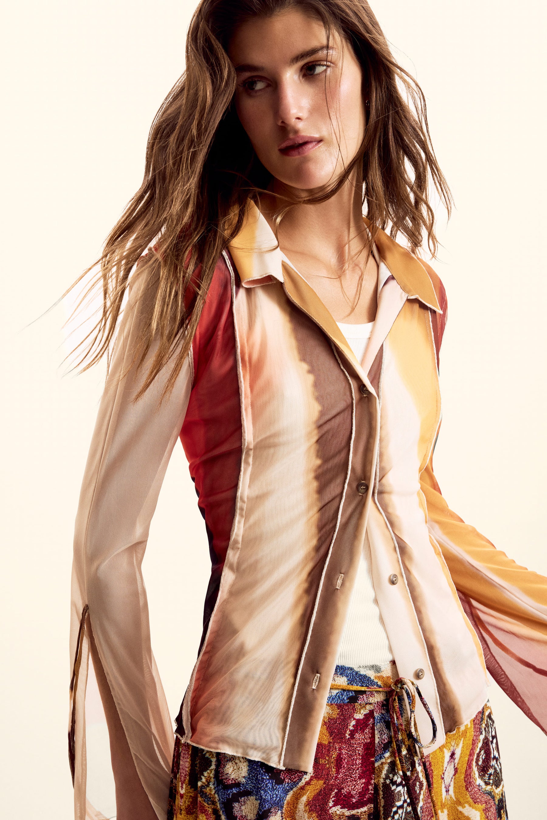 さらに、キルティングのパッチワークジャケットや、プリントチュールドレス、透け感のあるシャツなどの繊細なピースが、軽やかさとレイヤードの遊びを加えます。