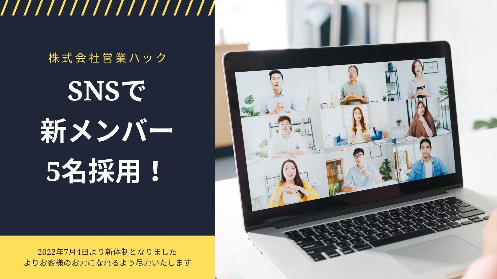 株式会社営業ハックには2022年7月にSNS採用で5名の新メンバーが入社しました。人材募集を行うことになった背景などを掲載しています。