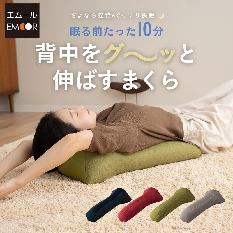 眠る前にたった10分間乗るだけでリフレッシュできる、背中をグ~ッと伸ばすまくら。肩甲骨・胸骨・肩回り・腰のストレッチもコレ1つ。