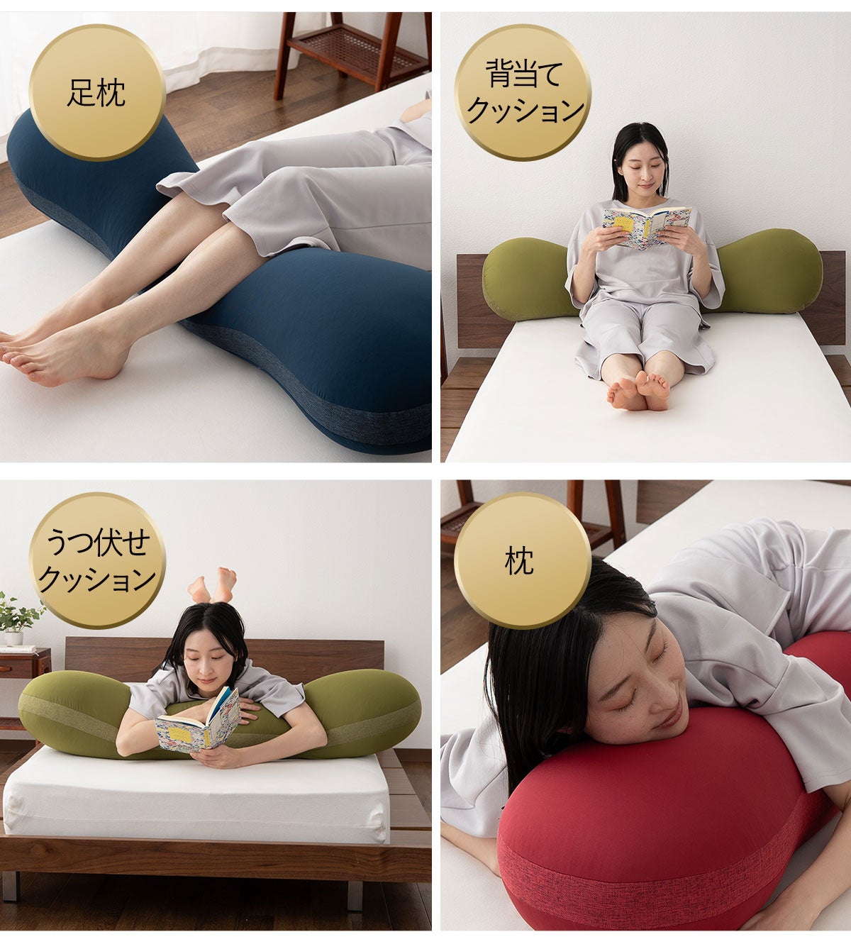 高品質な中材を使っているから、抱き枕以外にも、足枕やクッション、枕としてもお使いいただけます。寝室だけでなく、リビングでも活躍します。