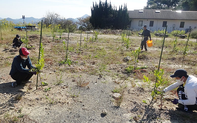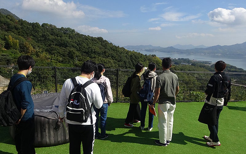 次に,グランピング施設やシトラスパーク園内を見学して,現在公園や地域が抱えている課題についての説明も聞きました。学生たちは美しい景色に感動しつつ,難しい地域課題について,たくさんのことを学んでいました。