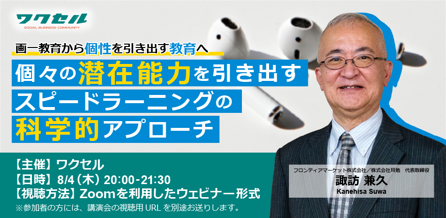 個々の潜在能力を引き出す!教育の科学的アプローチ 8/4(木) 20:00-【ワクセルオンライン講演会】