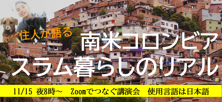 【11/15講演会】南米コロンビア スラム暮らしのリアル、Zoomをつなげて直接聞く!