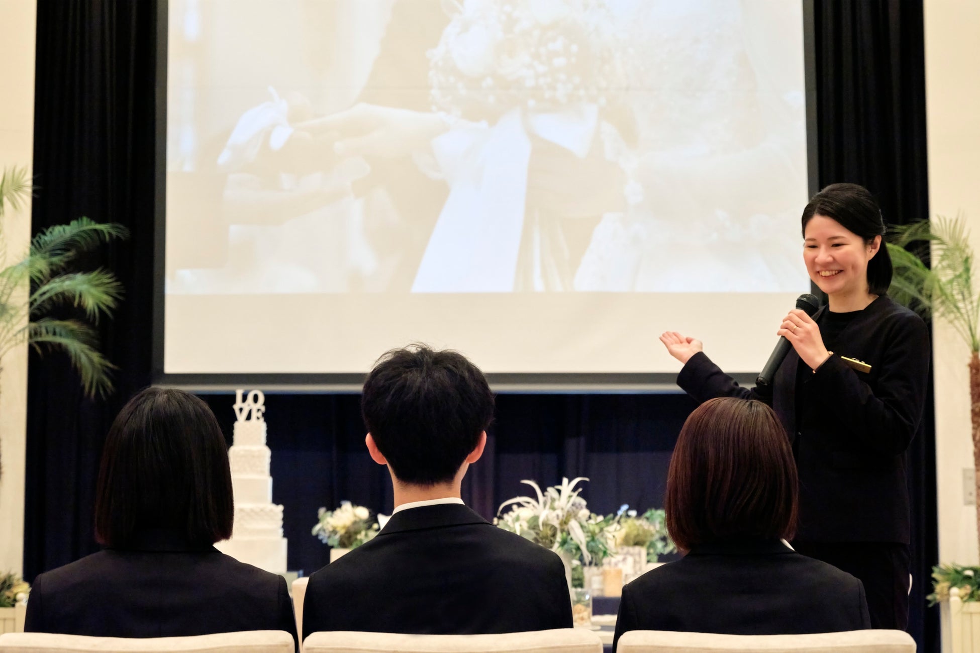 東京ウェディング・ホテル専門学校の学生たちは、約半年間のウェディングプランナーアシスタント実習を経験し、日々の成長を続けています。学生ならではの真っ直ぐな熱い想いを、当社ベスト-アニバーサリーのスタッフが当日の結婚式をサポート、