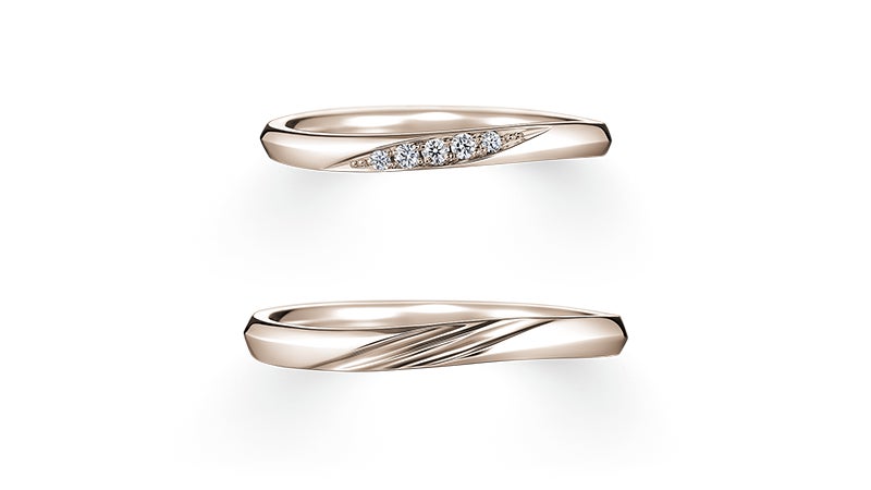 寄り添い羽を休める仲睦まじい蝶々のような、繊細な美しさを持つマリッジリングです。アイプリモ独自の「着け心地メソッド」により、着けていることを忘れるほどの軽さと、まるで指の一部のようなストレスフリーのフィット感を実現。細身でありながら、一生のリングにふさわしい耐久性も備えています。斜めに施されたカッティングが2枚の羽を合わせて佇む蝶の姿と重なり、シンプルな中にもストーリー性を秘めた他では出会えないリングです。