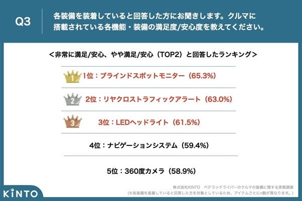 Q3.実際に満足度/安心度の高いクルマの装備は?