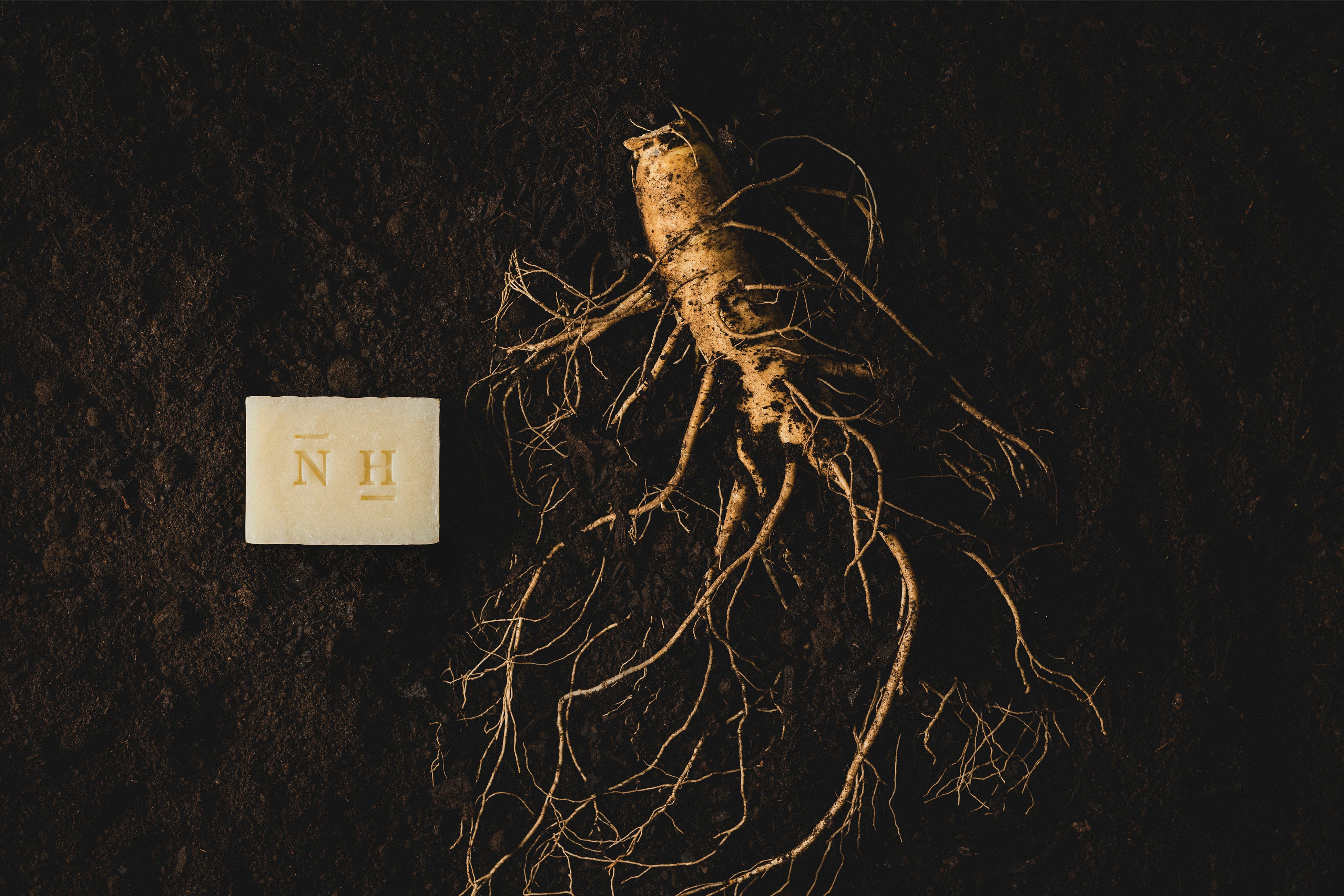 3年間かけて大切に育てたオタネニンジンは、全草を有用成分を壊さない低温真空抽出法でエキス化します。エキスを絞った後の残渣は低温乾燥させパウダー状にし、オーガニックシアバター、コメヌカ、ココナッツオイルなどの一番搾りの植物オイルにつけこみ、1週間滲出することで美容成分をあますことなく抽出。水は1 滴も使わず、仕込み水にすらオタネニンジンの生体水を使用し、原料を合わせた後は、職人が低温でじっくり釜焚きするコールドプロセス製法で45~60 日間かけて熟成させます。こうして時間と手間をかけて作られたプレミアム洗顔ソープは植物のちからをあますことなく肌に届け、健やかな状態へと導いてくれます。