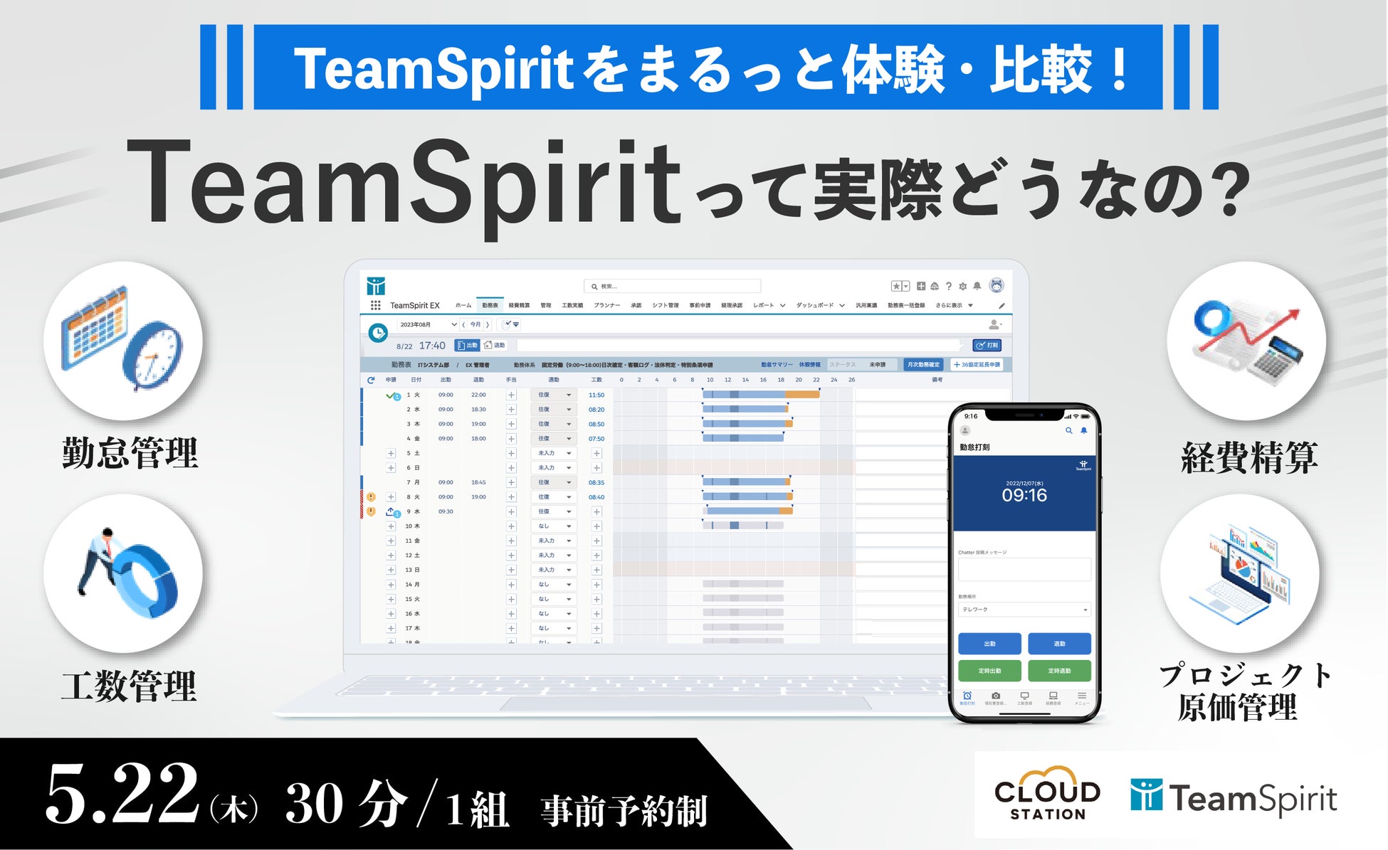 人事労務分野のシステム活用・導入支援を手掛ける株式会社TECO Design(本社:東京都新宿区、代表取締役社長 : 杉野 愼、以下:当社)は、当社が運営するショールーム「CLOUD STATION」にて、株式会社チームスピリット(本社:東京都新宿区、代表取締役CEO:道下和良)との共催オフラインイベント『TeamSpiritって実際にどうなの?』を2025年5月22日(木)に開催します。