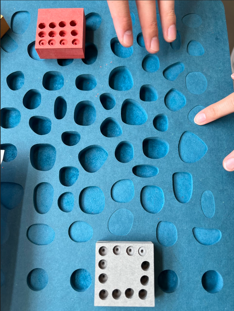 また、什器はブロック状のパーツを組み合わせているため、店頭展開のサイズに合わせてその都度、形を変えられる設計となっています。