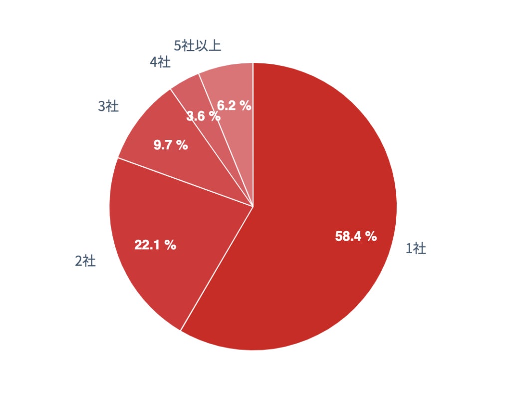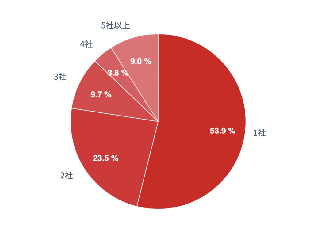 53.9%と過半数以上が1社のみのカードローン利用に留まり、「2社」「3社」と続いた。一方、「5社以上」との回答も9.0%で3社と並んだ。