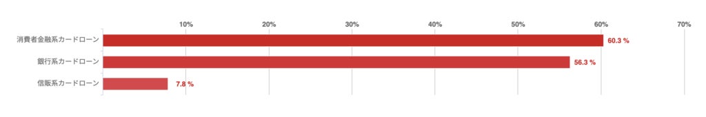 消費者金融カードローンの割合が60.3%と最も多かったものの、銀行カードローンも56.3%とこれにせまる結果となった。