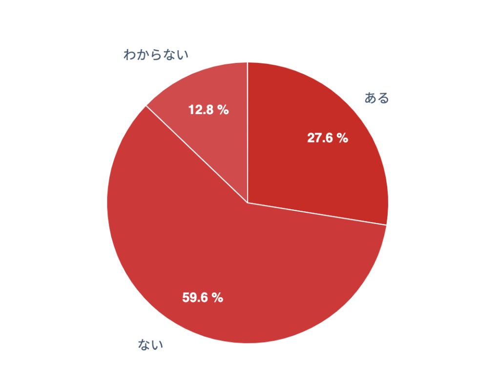 周囲にバレた経験については、「ない」が59.6%で最も多く、「ある」は27.6%、「わからない」は12.8%となった。
