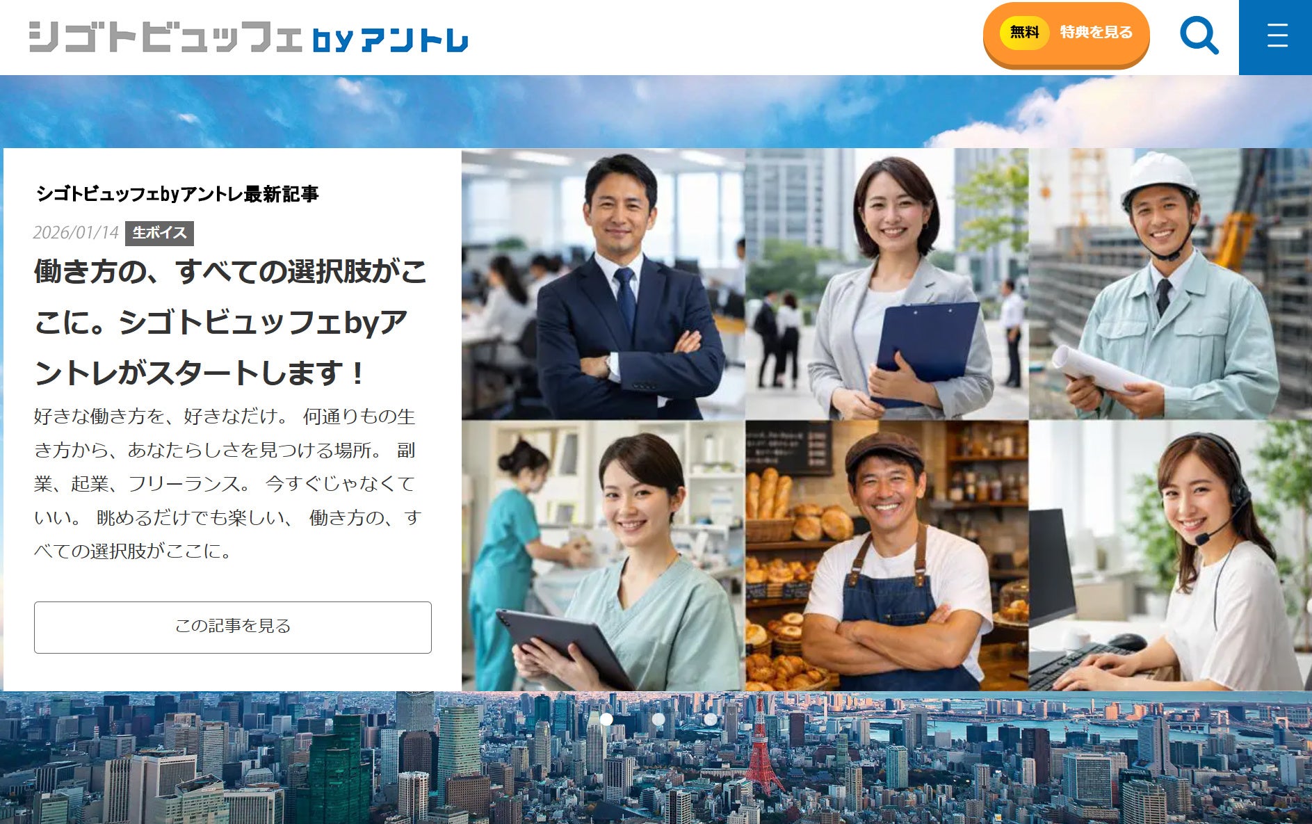 こうした社会背景を踏まえ、読者が自分に合った働き方を“ビュッフェ”のように自由に選べる場を目指し、「働き方の、すべての選択肢がここに。」を新たなキャッチコピーに掲げ、メディア名称を「シゴトビュッフェ by アントレ」へ変更。あわせて、サイトのリニューアルを実施します。