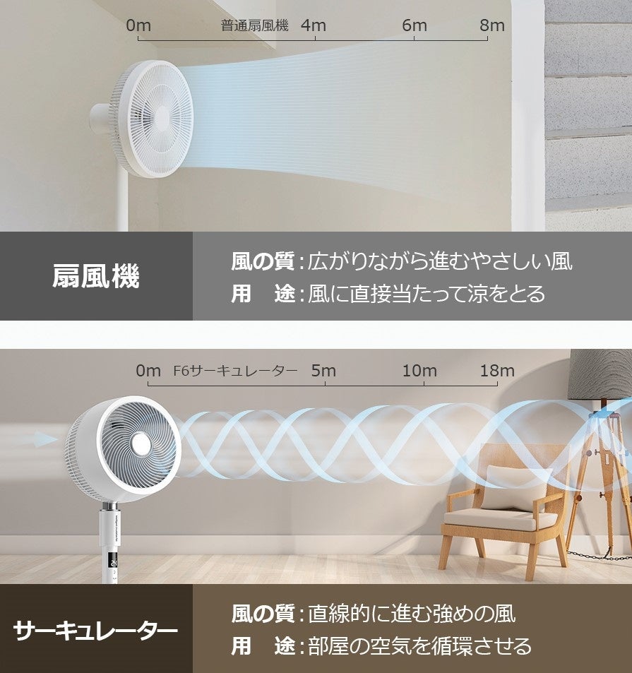 従来のサーキュレーター&リビング扇風機の音デシベルは35-60dBのものが多くありますが、F602サーキュレーターは最小わずか20dBしかありません(葉が落ちる音のよう)。なぜなら、2022最新型の高性能、省電力で使えるDCモーターを採用して、空気と電機と扇の葉の間の摩擦を低減し、騒音を大幅に低減し、本格的な静音リビング扇風機を実現しました、理想的な睡眠環境作りをサポートします。