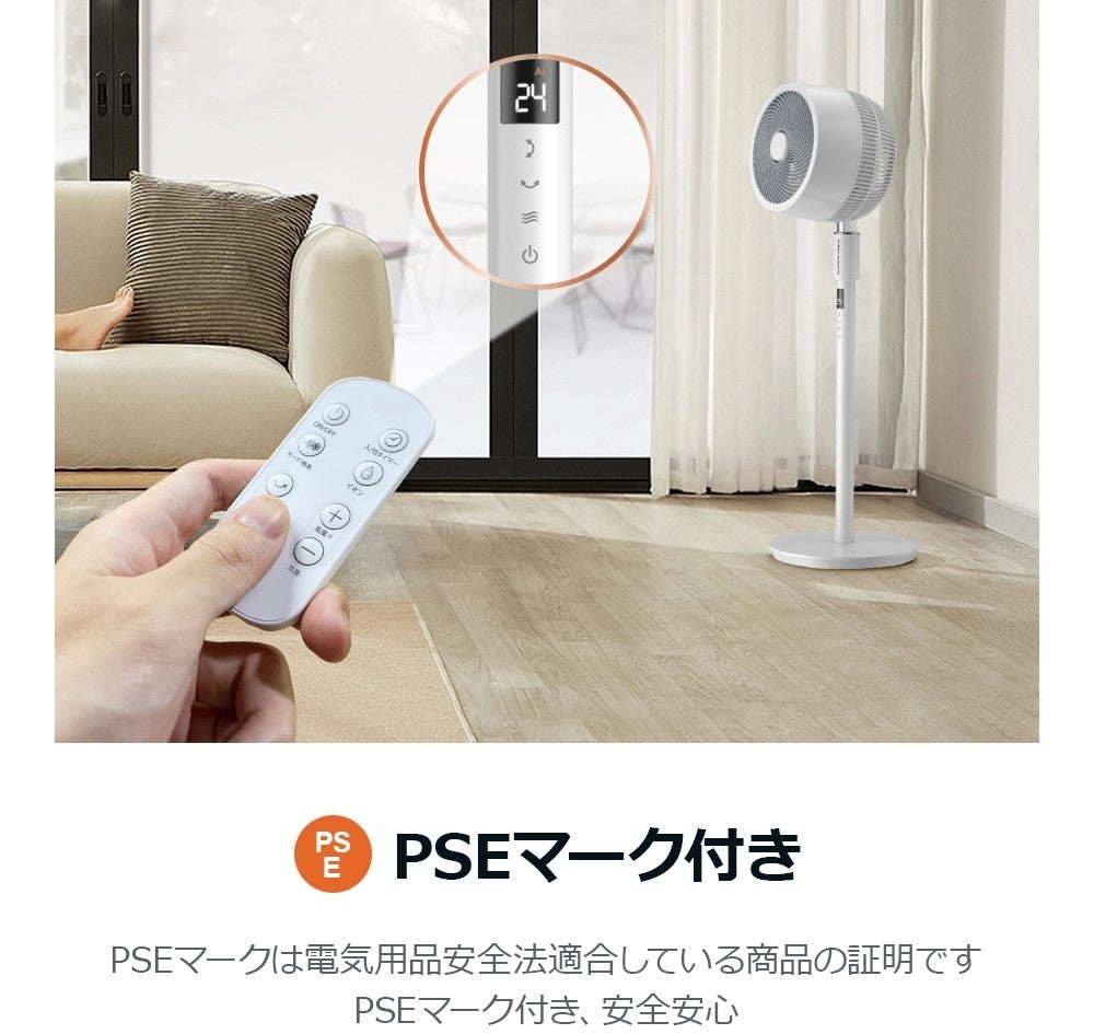 高性能なDCモーターを採用する事で、コストパフォーマンスと性能を両立しました。一般的なACモーターの扇風機より消費電力を抑えられるため、電気代を節約できるのはポイントです。