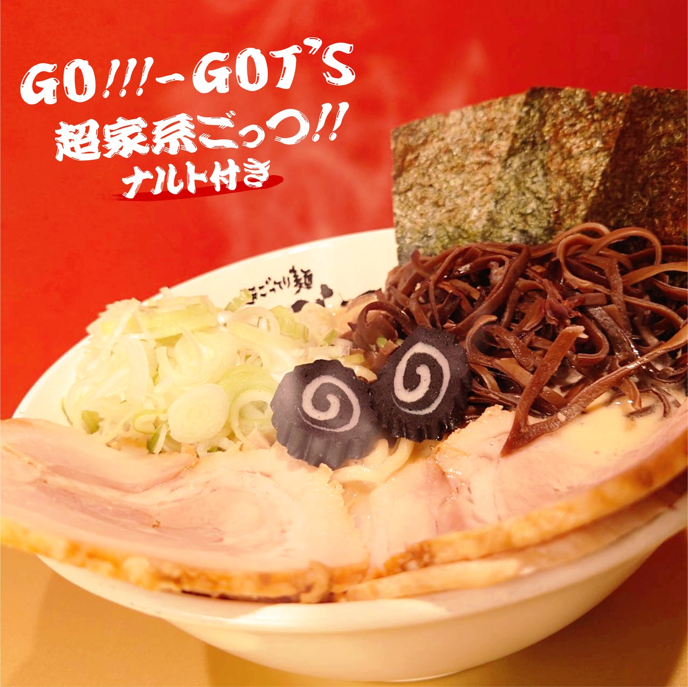 下記コラボメニューのご注文と合わせて別売りの煮卵100円(税込)をご注文頂くと着麺した際にGOT’Sが煮卵をトッピングするキャンペーンを実施致します!