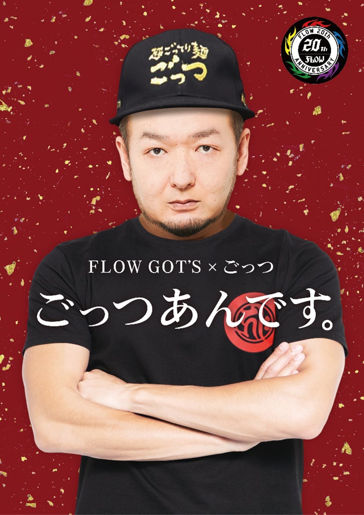 TVアニメ 『NARUTO-ナルト-』 のオープニングテーマや 『コードギアス 反逆のルルーシュ』 等のアニメ作品の主題歌を多数担当している5人組ロックバンドのFLOWが、その20周年突入イヤー記念コラボ企画 & 「GOLD」 の発売記念の一環として、ベース担当メンバーの「GOT’S」とラーメン屋 『超ごってり麺ごっつ』 とのコラボ企画“ FLOW GOT’S×超ごってり麺ごっつ "を行う。