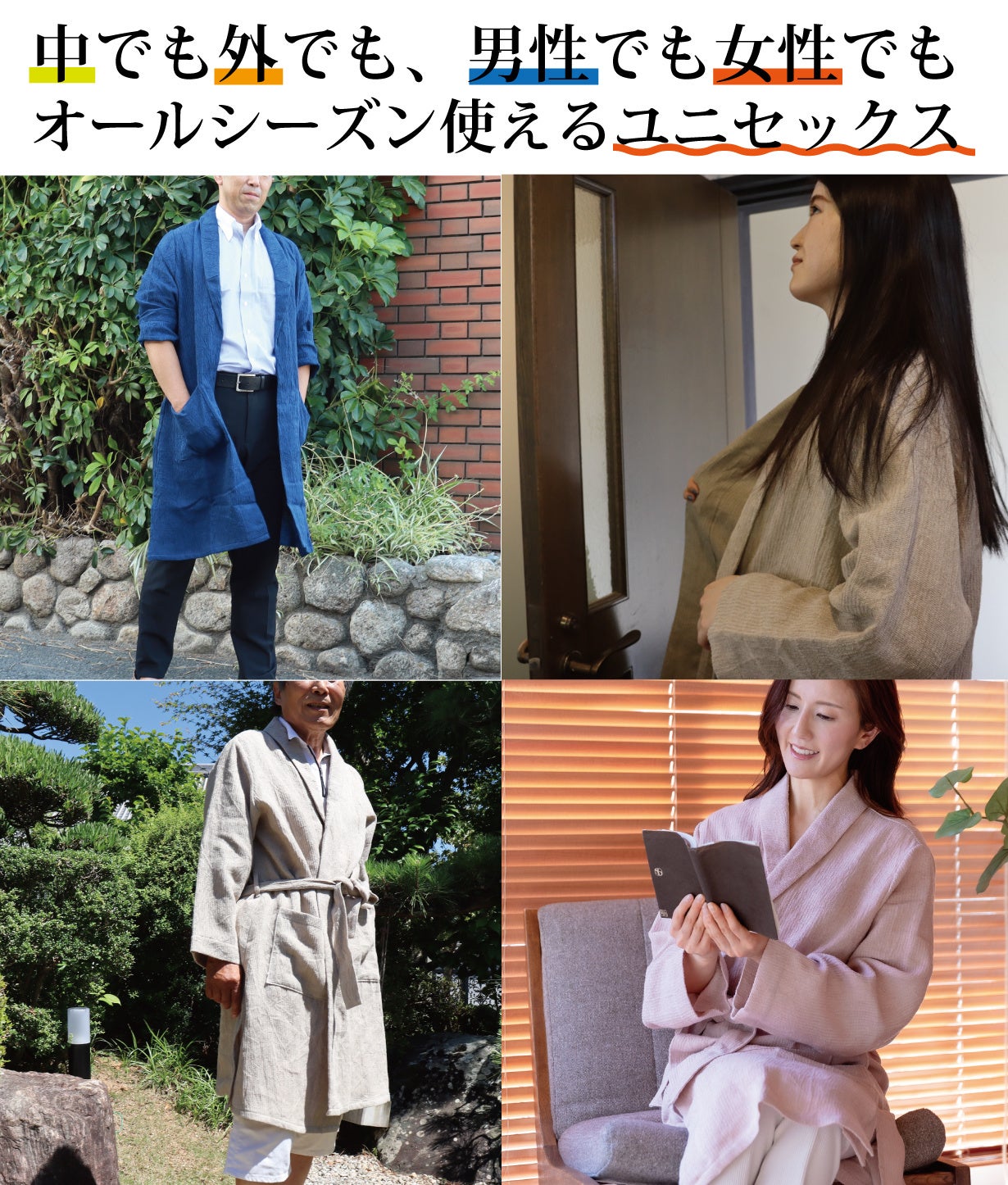 バスローブのいいところだけを詰め込んだこの麻100%の一着をどうぞご体感くださいませ!