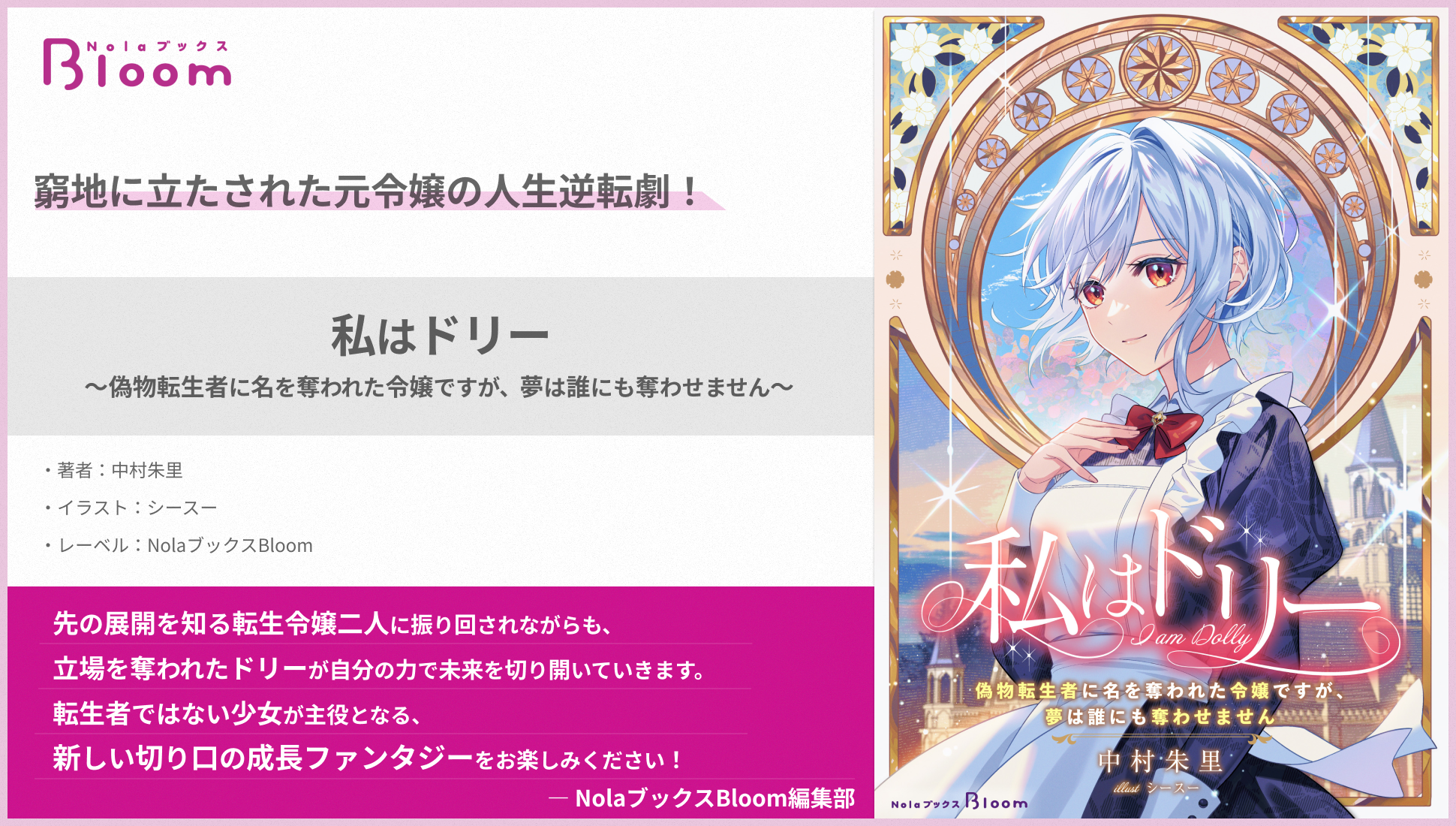 ・作品タイトル:私はドリー~偽物転生者に名を奪われた令嬢ですが、夢は誰にも奪わせません~
