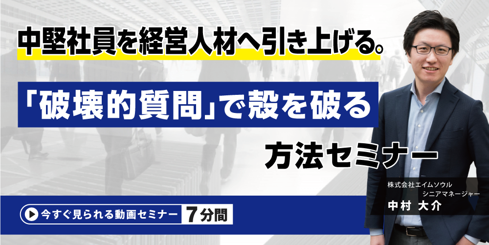 『中堅社員を経営人材へ引き上げる。「破壊的質問」で殻を破る方法』無料動画(約7分間)を公開開始