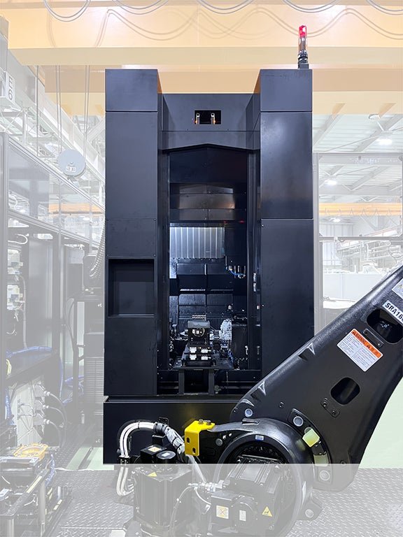 TTMCは、アルムの独自技術を用い、金属・樹脂部品の切削加工工程の全12工程を完全自動化した切削加工機です。中心となる切削加工機は、スギノマシンの同時5軸マシニングセンタ「セルフセンタSC-V30a」をTTMC用にカスタマイズしたものを採用しています。