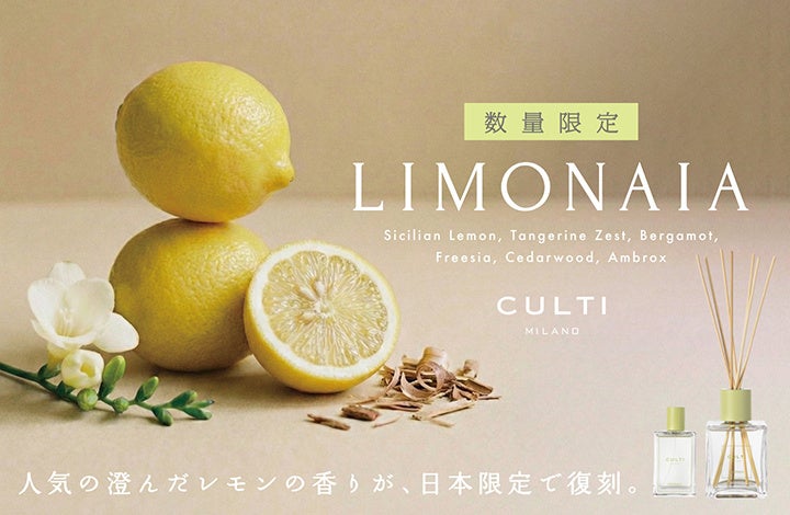 イタリアのフレグランスブランド「CULTI MILANO(クルティ ミラノ)」から、日本限定で復刻となる香り「LIMONAIA(リモナイア)」が10年ぶりに登場。3月6(金)から数量限定で発売します。