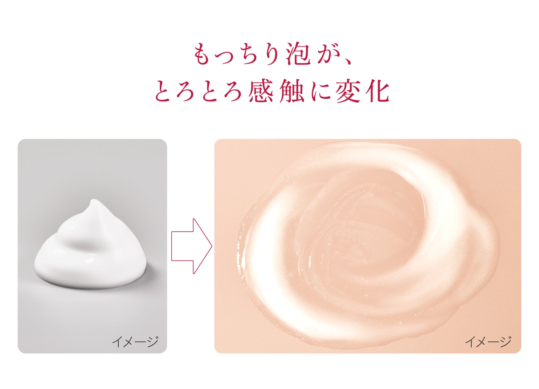 “もっちり”から“とろとろ”に変化する泡が、マッサージ時の肌の摩擦を軽減。