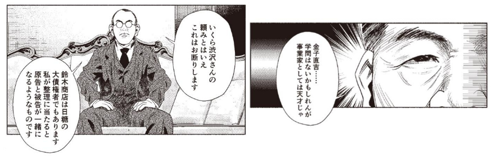 鈴木商店の金子直吉は、日本精糖の寡占を嫌い、自ら製糖事業に乗り出し北九州の大里で大里製糖所(現・関門製糖)を設立する。その後、渋沢栄一と対峙することになるが、渋沢栄一は「事業家としては天才」と高く評価し、金子直吉の名は一気に高まる。