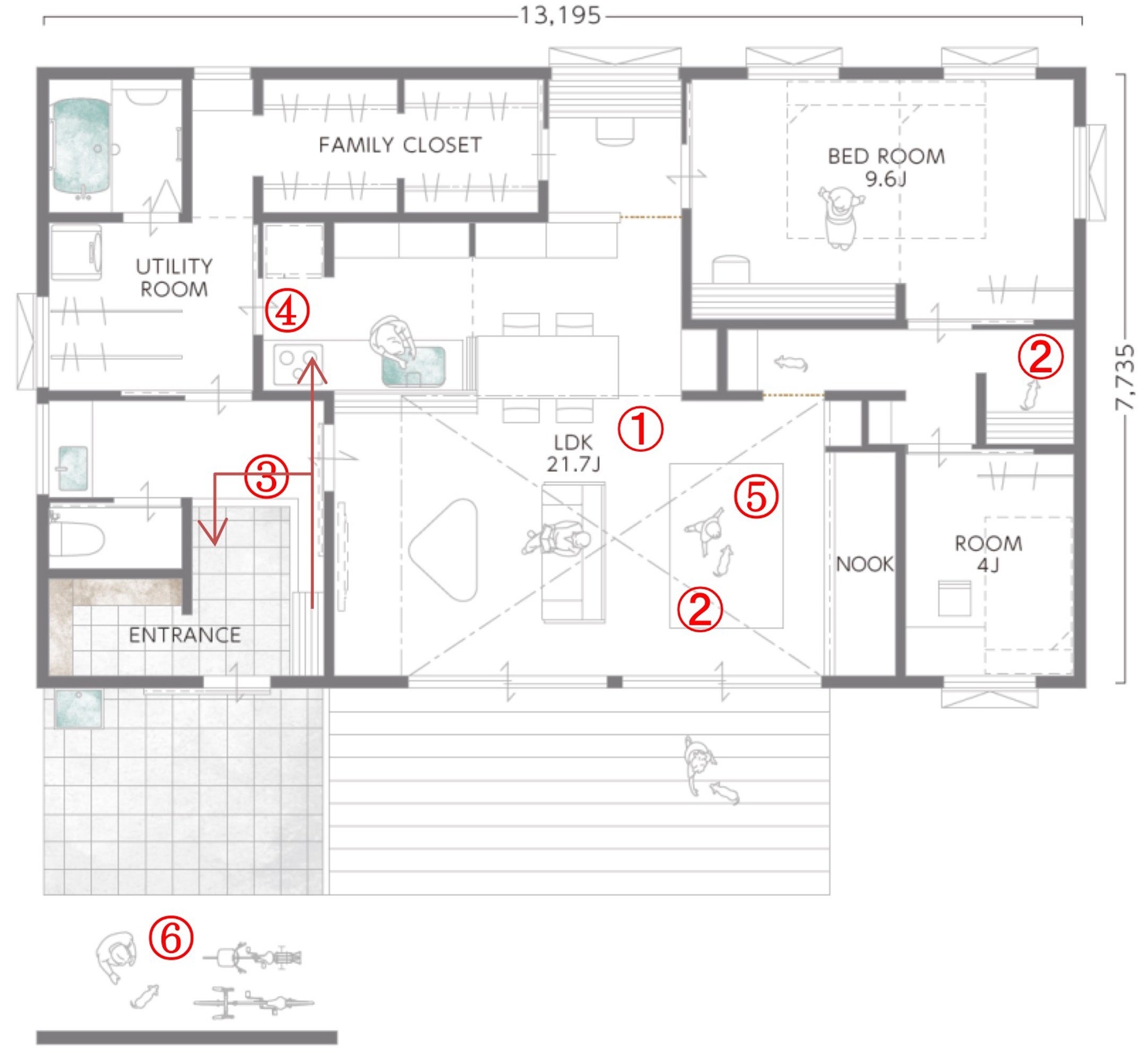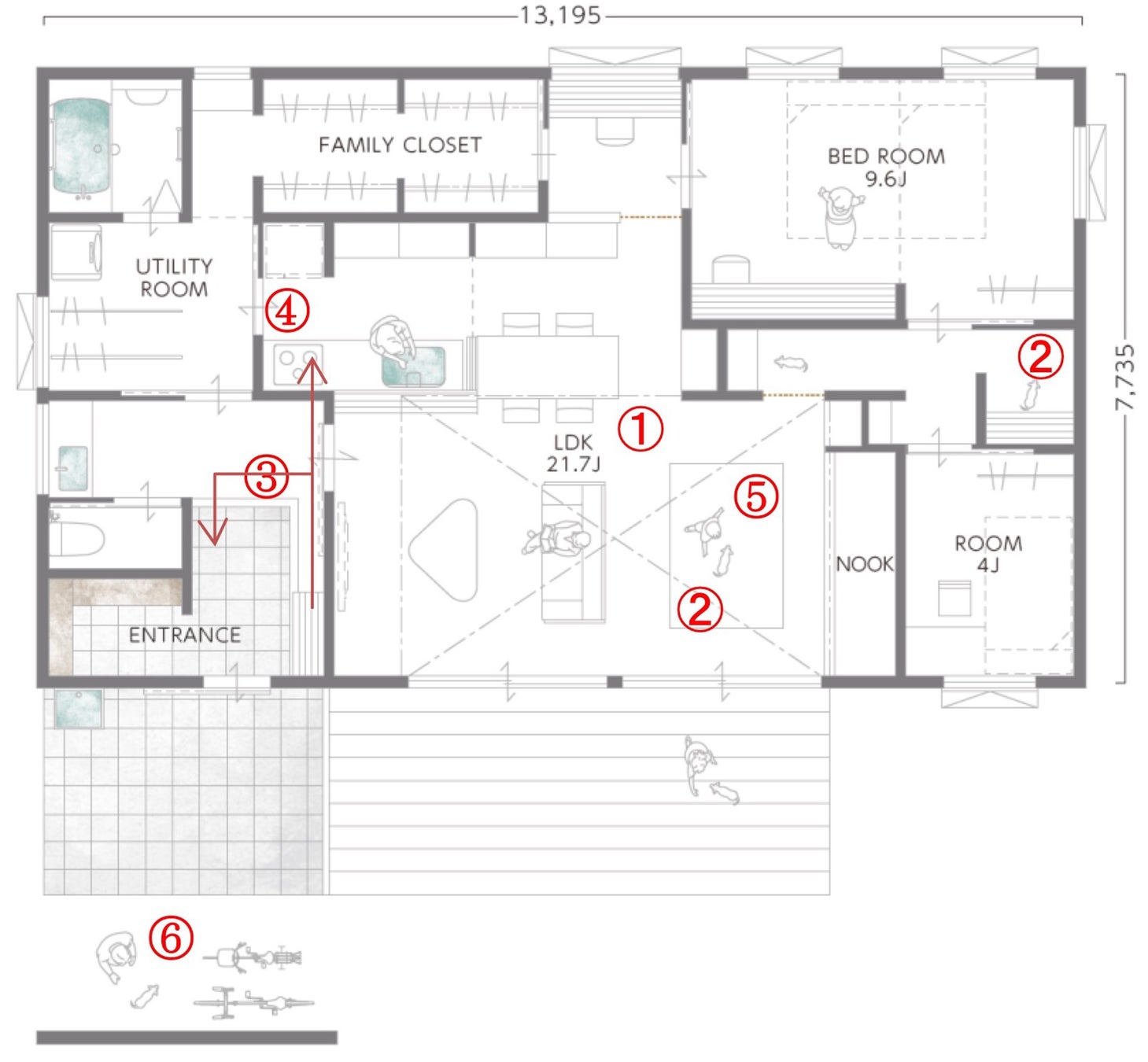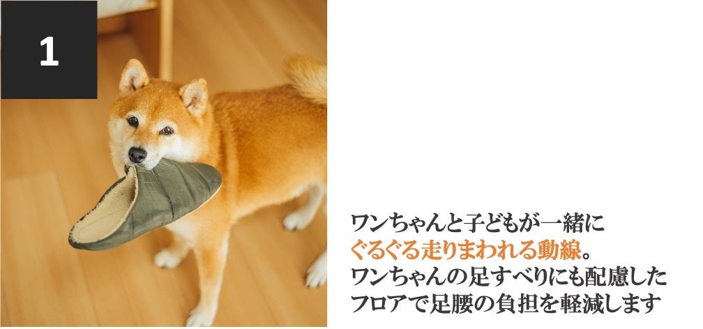 ワンちゃんと子どもが安全に楽しく遊べる、子育てにやさしい動線