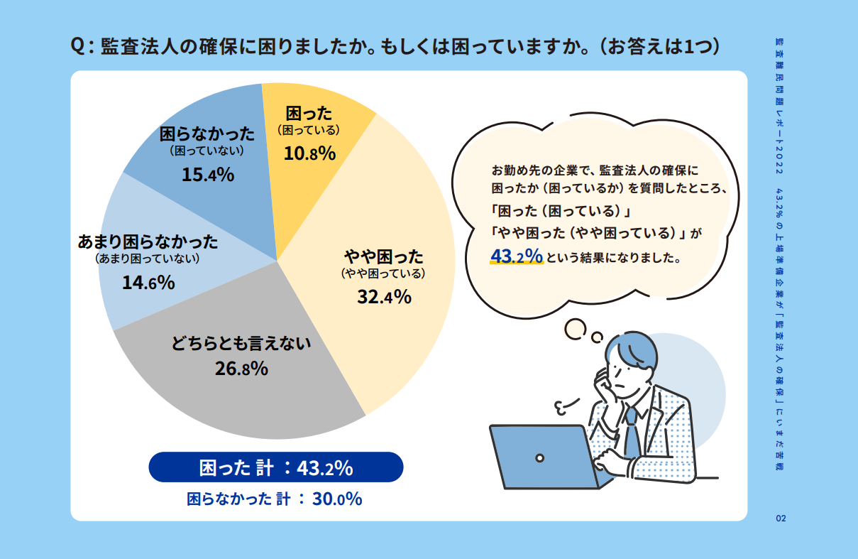 43.2% の上場準備企業が「監査法人の確保」にいまだ苦戦