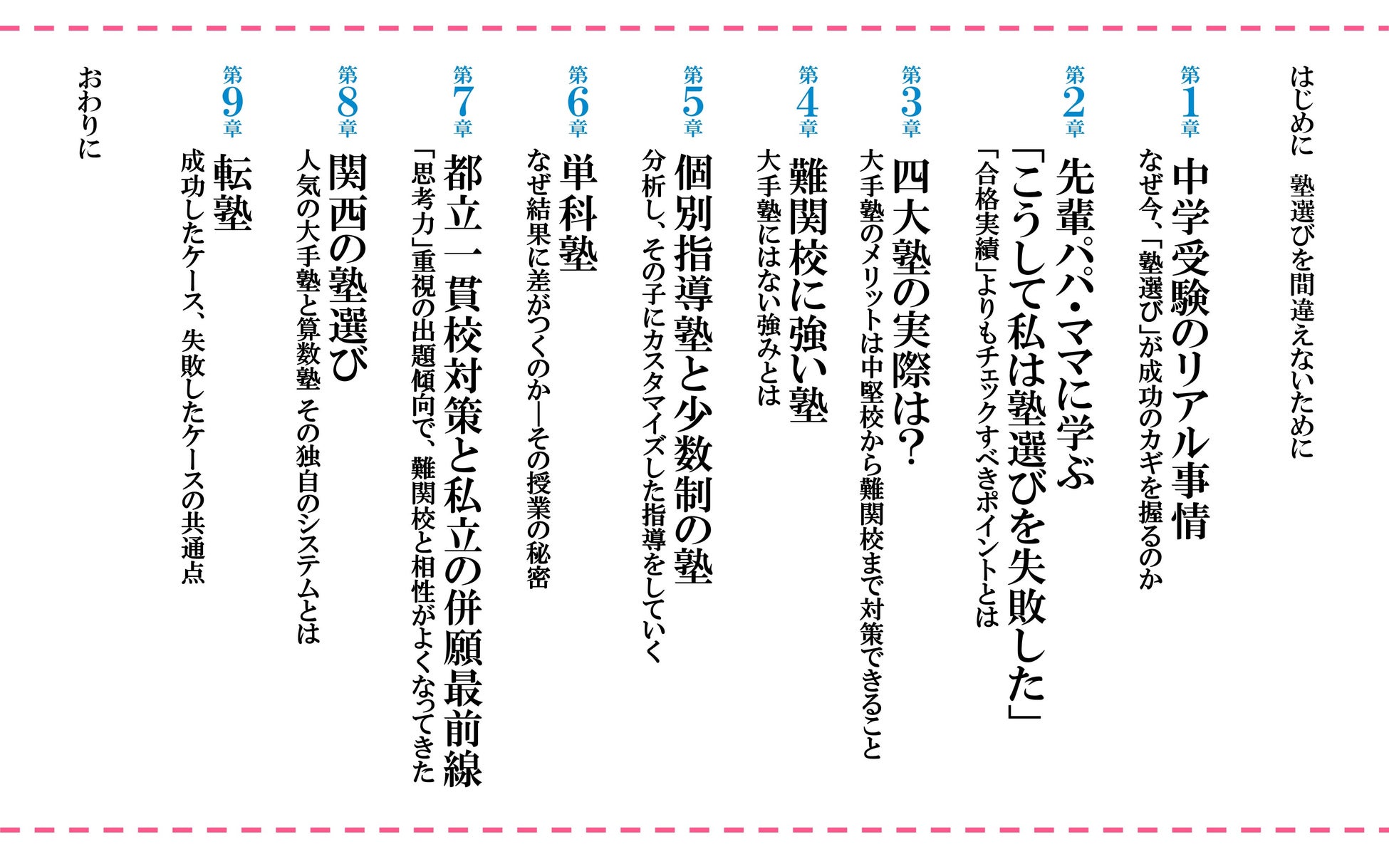 ロングセラー『女子校力』著者で、今まで多くの学校関係者・塾関係者に中学受験を直撃取材してきたノンフィクションライターが、塾選びを間違えた親子の失敗談から見えてくる問題点、ネットではわからない各人気塾の実際など、受験生の親が入塾・転塾の際に知りたい情報を忖度なしに明かした最強の塾ガイドです。
