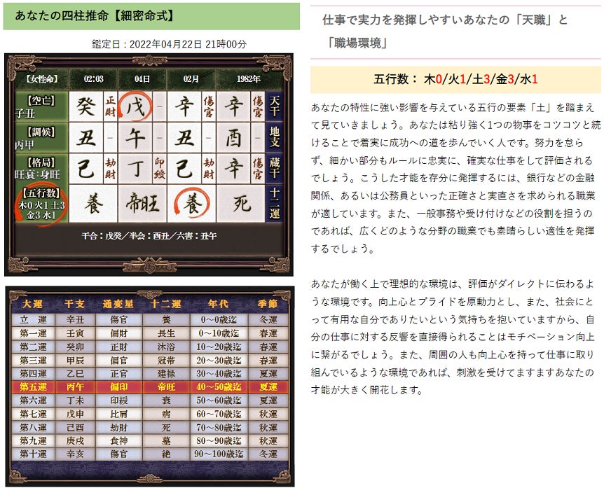・コンテンツ名称:四柱推命|細密計算で占うあなたの性格と運勢傾向『無料占い』