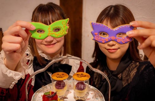 ハロウィンを目一杯楽しみたい方にも、ハロウィンにあまり馴染みがない方にも、ワクワク&大満足間違いなしのアフタヌーンティー。パンプキンモンブランに紫いものレアチーズケーキ、パンプキンとキノコのキッシュやシーフードと秋のフルーツマリネなど、秋の味覚がたっぷり詰まったメニューです。マスカレードクッキーを顔に当てて、フォトジェニックな撮影も。紅茶はチョコレートレーズン、キャラメル、アールグレイエレガンス、リラックスローズなどの全12種からお選びいただけます。