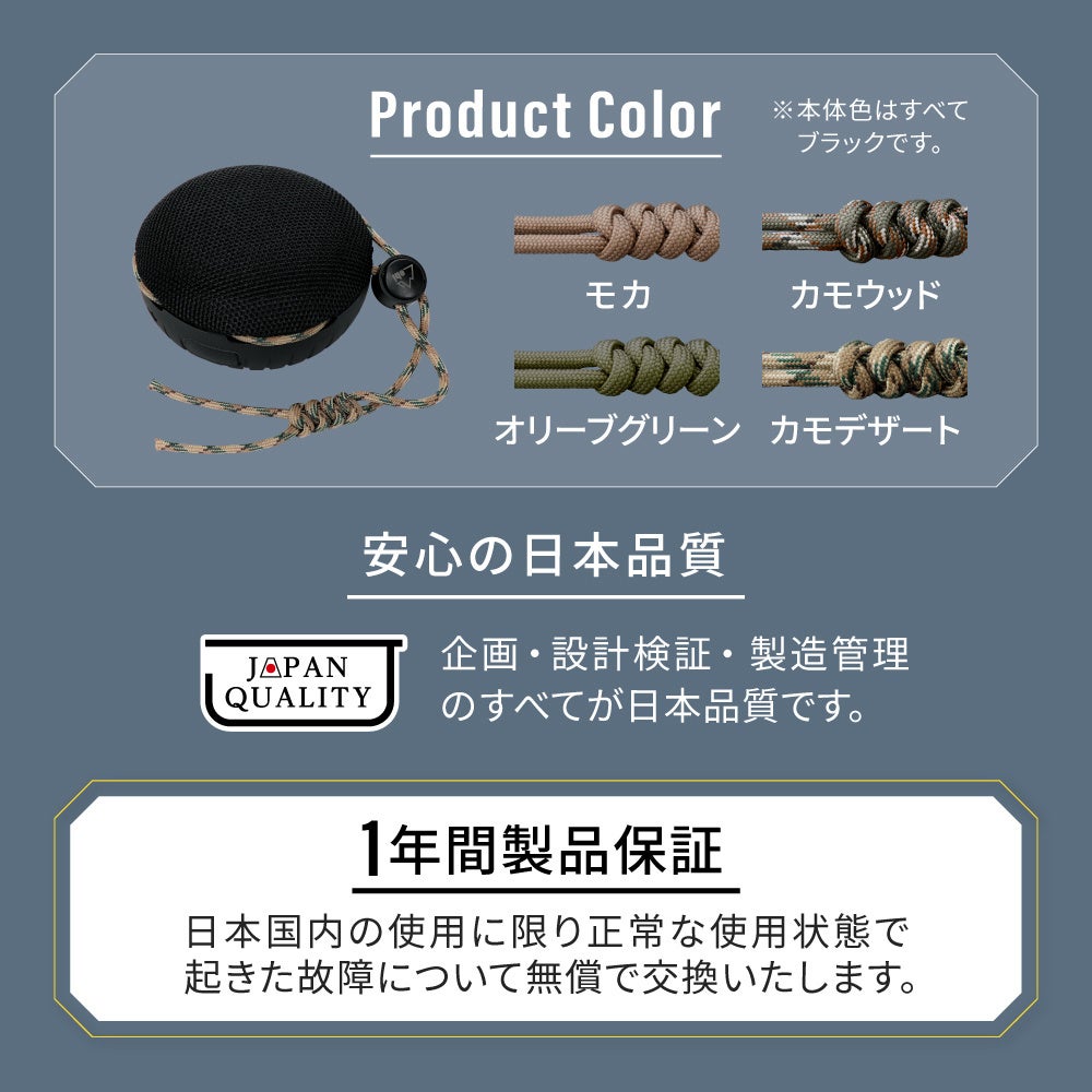 本体のストラップはテントを張る用具にも採用されている丈夫でおしゃれなパラコードを採用しております。