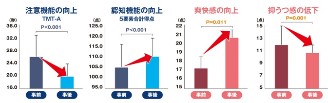 ※1 シナプソロジーは、脳の働きを考えて組み立てられたメソッドです。「認知機能をつかさどる脳」や「運動に関連した脳」を活性化させると同時に、楽しさや爽快感から「情動に関連した脳」にも刺激を与えて活性化させます。その結果、注意力が高まり、判断力が早くなる等、脳機能を高めるとともに、疲労感や抑うつ感が低下する等、心理面における効果も立証されています。