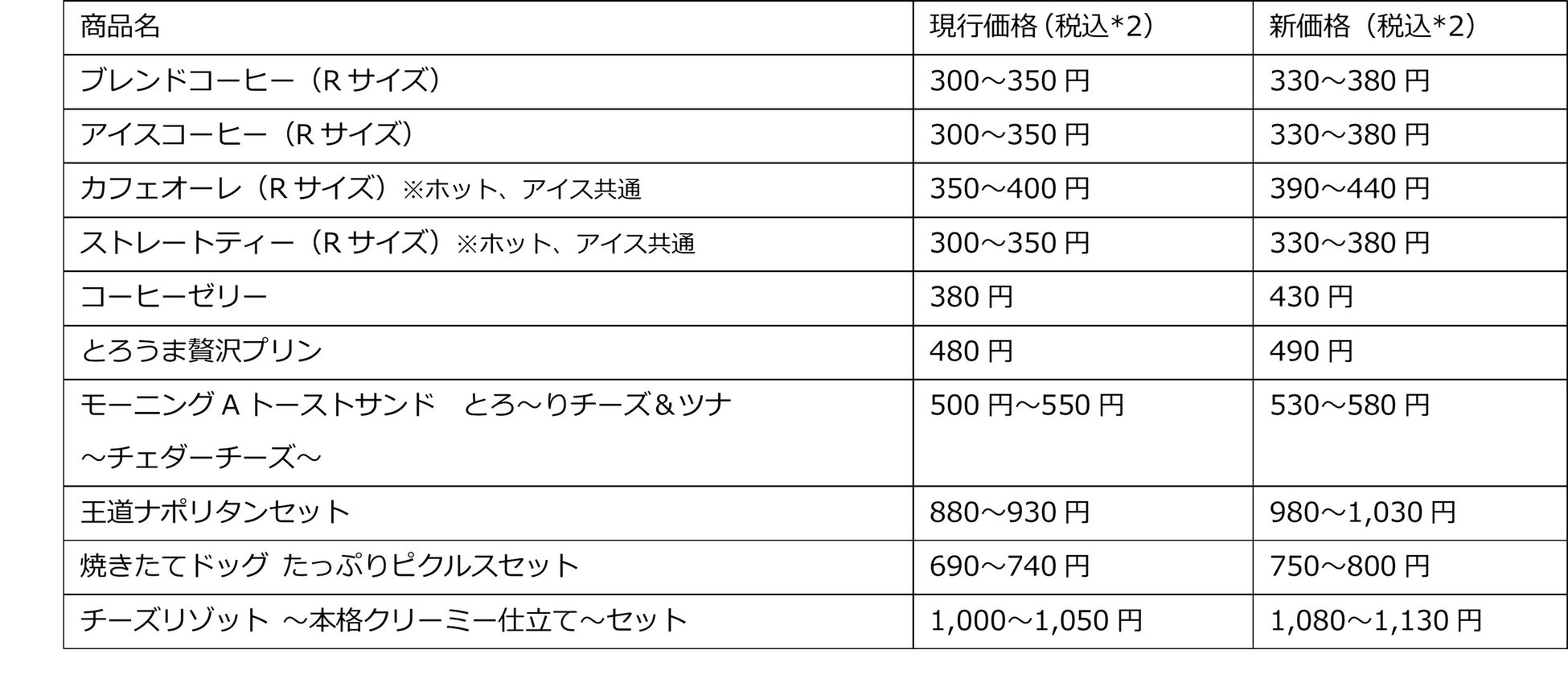 『カフェ・ド・クリエ』『カフェ・ベローチェ』『珈琲館』価格改定に関するお知らせ