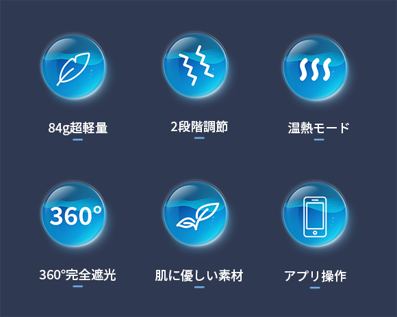 【360°遮光・温熱/冷温対応・2レベル振動・3D密着設計・折りたたみ収納】