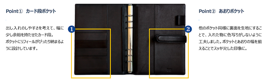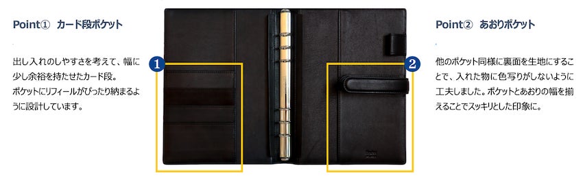 40代以上の男性システム手帳ユーザーをメインターゲットに、年齢に相応しい良いものを長くお使いいただけるよう良質な革を選びました。また、シンプルな作りにもこだわり、使い込むほどに革と使い心地の良さが感じられるバインダーで、ビジネスパーソンの仕事のパートナーとして最適です。